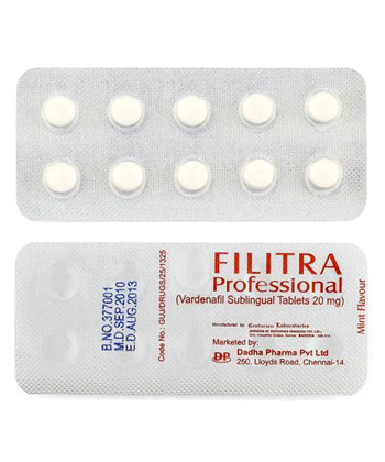 - Filitra Professional wird zur Behandlung von erektiler Dysfunktion eingesetzt. Das Medikament wirkt als Hemmstoff der Phosphodiesterase Typ 5 (PDE5), was zu einer Verbesserung der Blutzufuhr zum Penis führt.